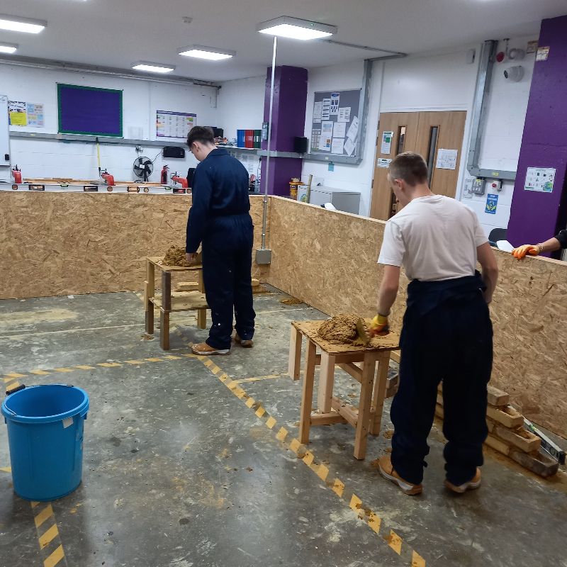 Our Level 2 Construction Group have been practising their brick laying skills this term. This unit covered the preparation and tidying of the building area, building stretcher bond walls, dwarf walls and jointing of brickwork.